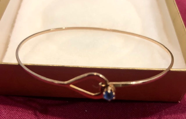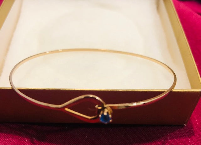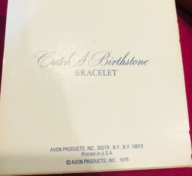New in Box, AVON Vintage Beautiful Elegant Catch a Birthstone Blue Gemstone Gold Tone Thin Bracelet