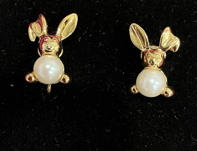 New in Box, Gorgeous AVON Vintage Pearl Bunny Clip Earrings Super Cute!