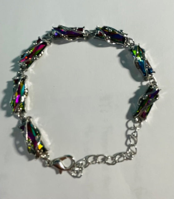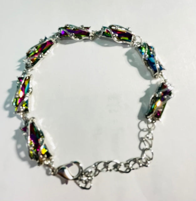 Very beautiful fashion bracelet. Colorful rectangular charms wrapped with silver tone metal. Cute bracelet for girls.