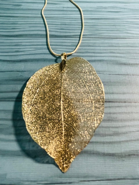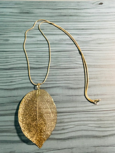 New Gold Plated Leaf Pendant Sweater Necklace