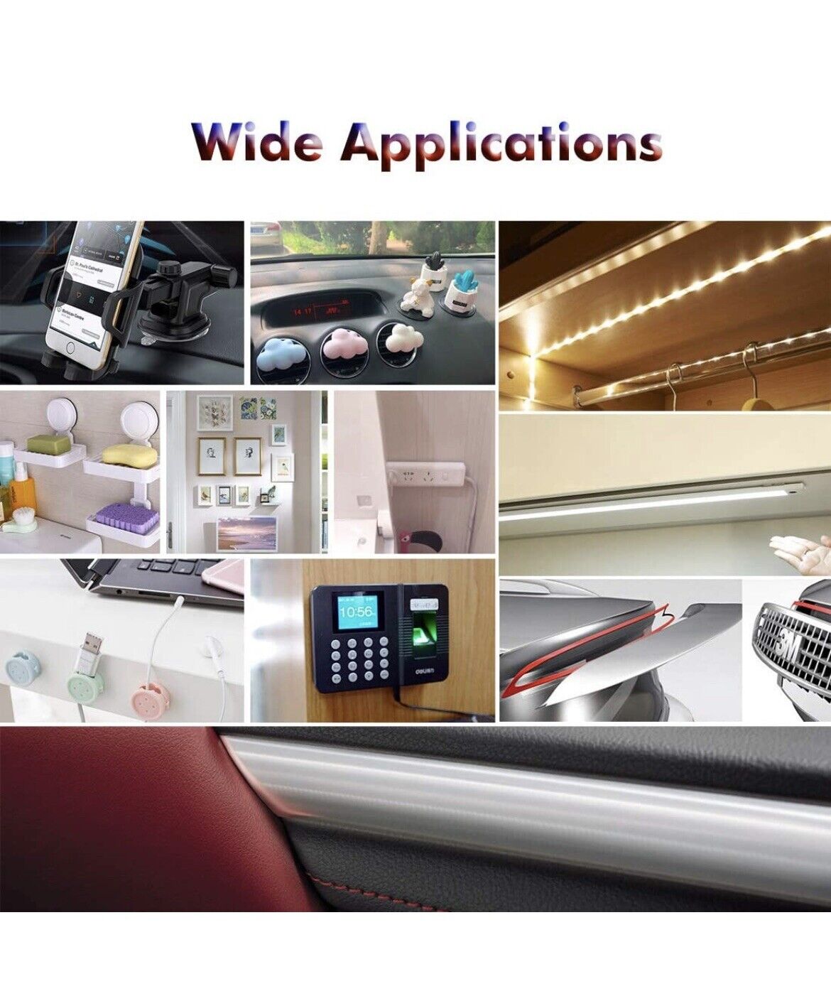 - APPLICATION: Strong bonding withstands moderate strength on smooth surfaces; safe for glass, metal, marble, tiles, trims, moldings on Automotive, car registration plates, name plates, address plaques, signs, car holders, refitting vehicle for body kit/front bumper/rear bumper/side skirt, home appliance panel repair, screen, metal mailbox, mirrors, hangers, holds servo, ESC, receivers, electronics on car, drones, quadcopters, crafts, fake nails, photo walls and so on.