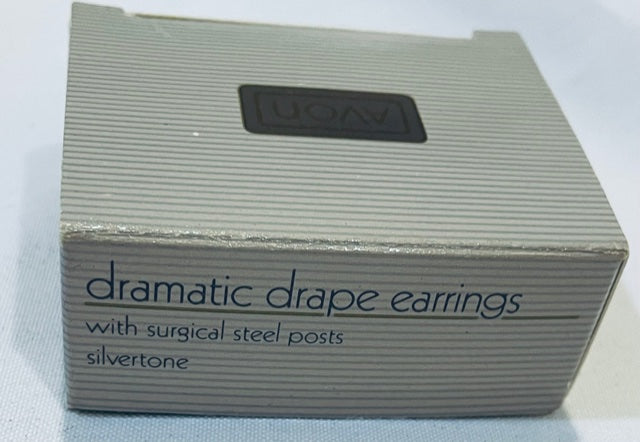 New in Box, Gorgeous AVON Vintage Dramatic Drape Earrings, Silver Tone Earrings with Surgical Steel Post